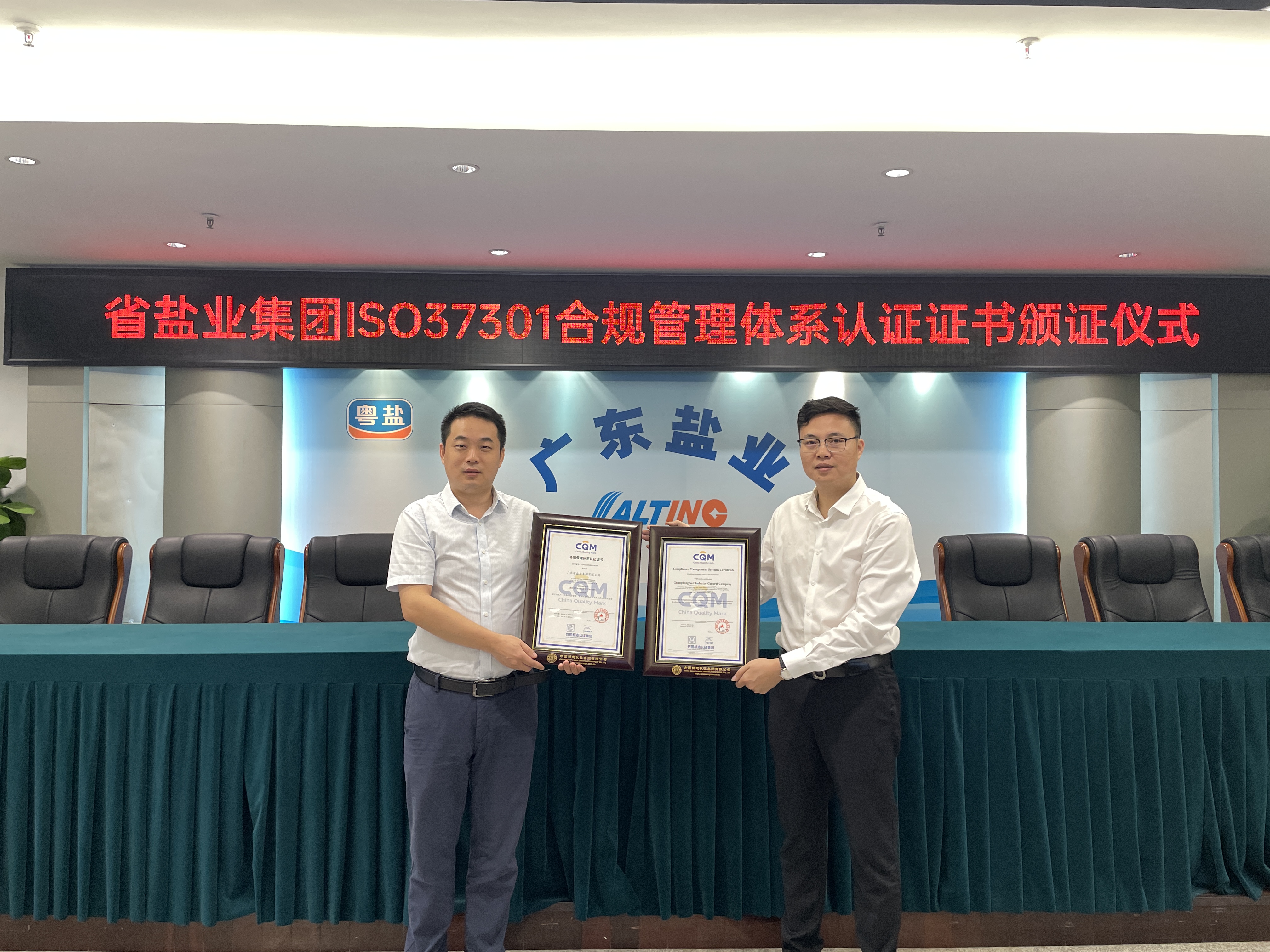 CQM方圓廣東向聯合電服頒發合規管理體系認證證書